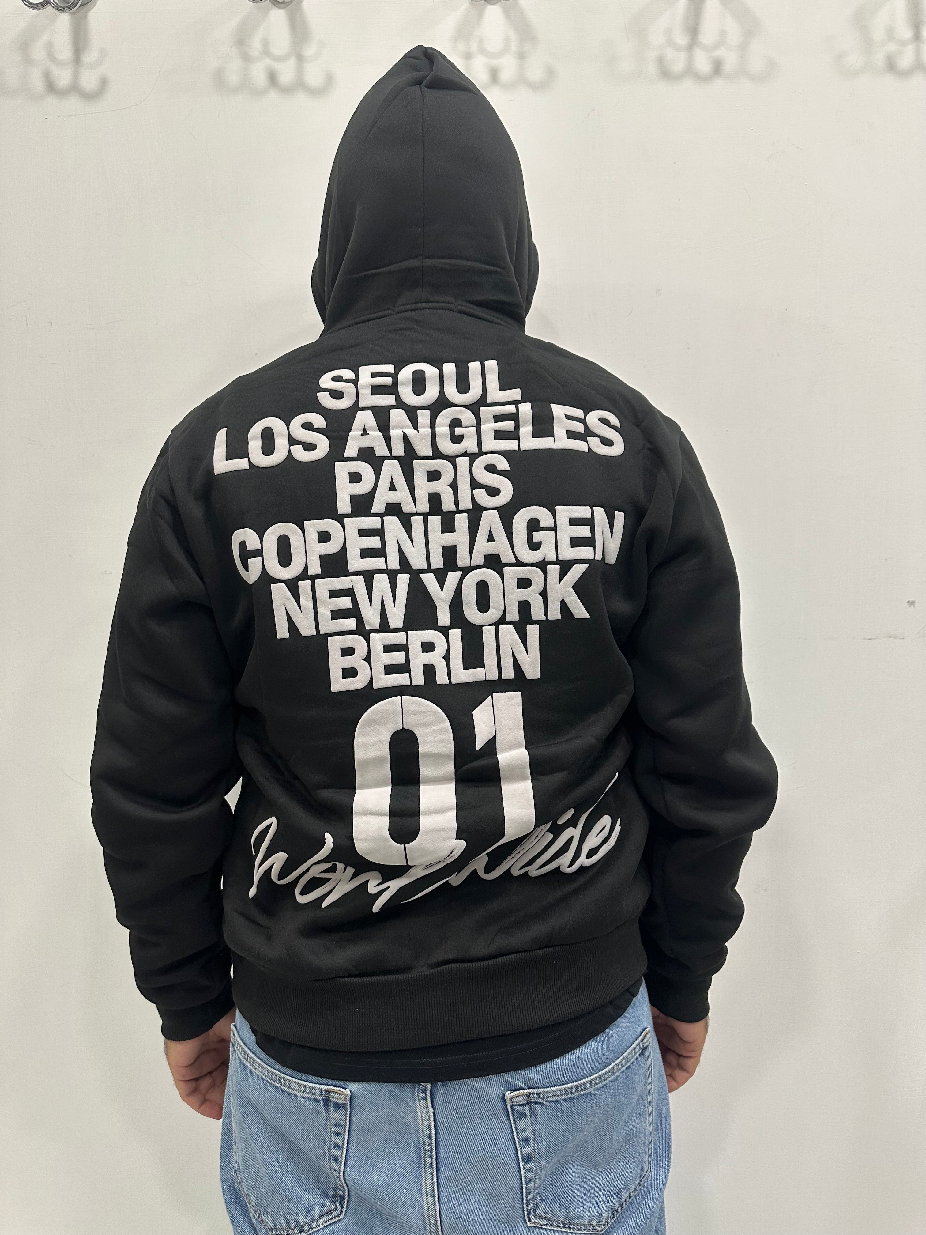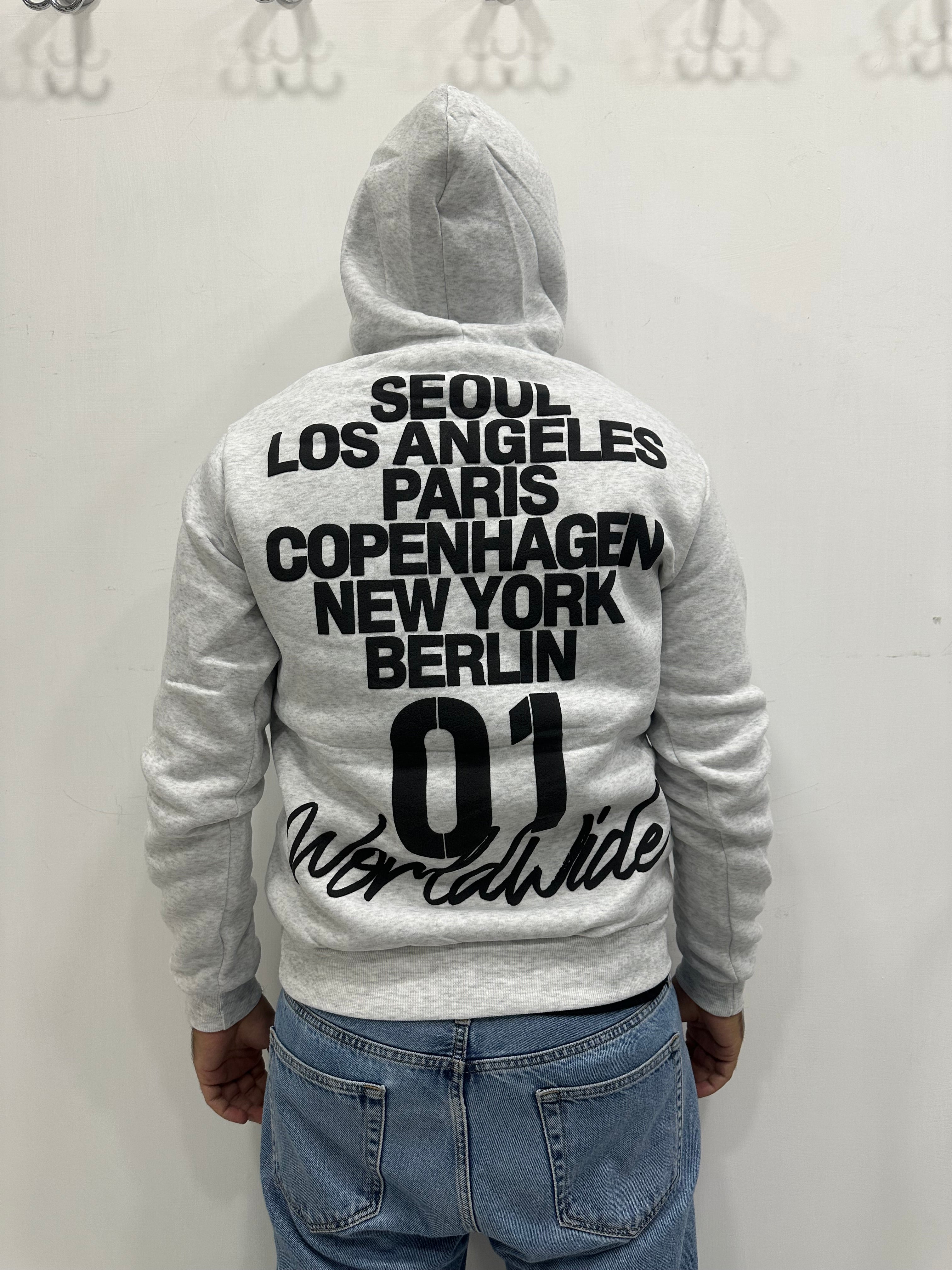 FELPA CON STAMPA E CAPPUCCIO FELPATA